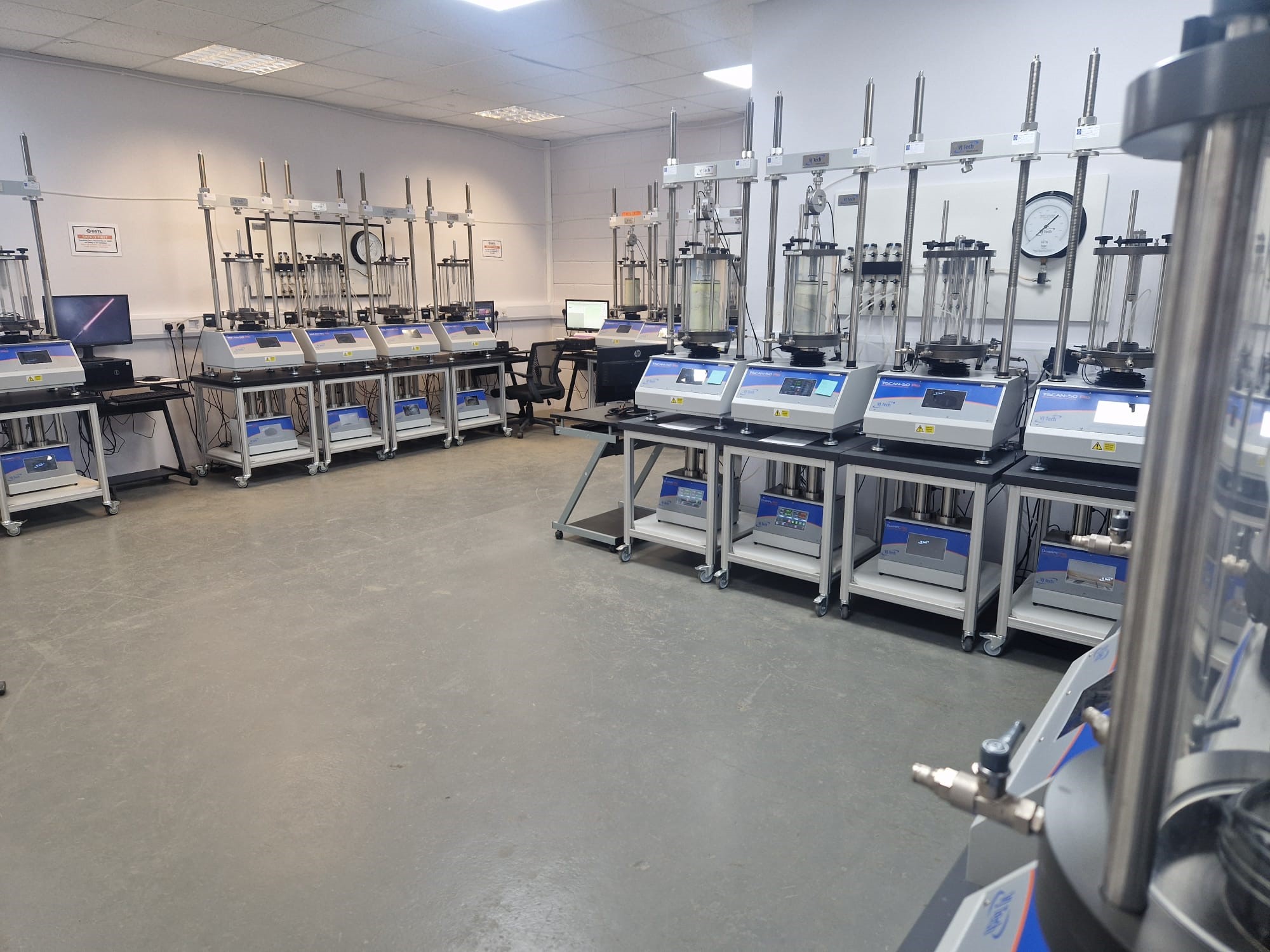 Our UKAS-accredited laboratory is a state-of-the-art facility designed to deliver reliable results efficiently. We are set up to support advanced soil testing, including effective stress testing, alongside permeability, consolidation and shearboxes where required.